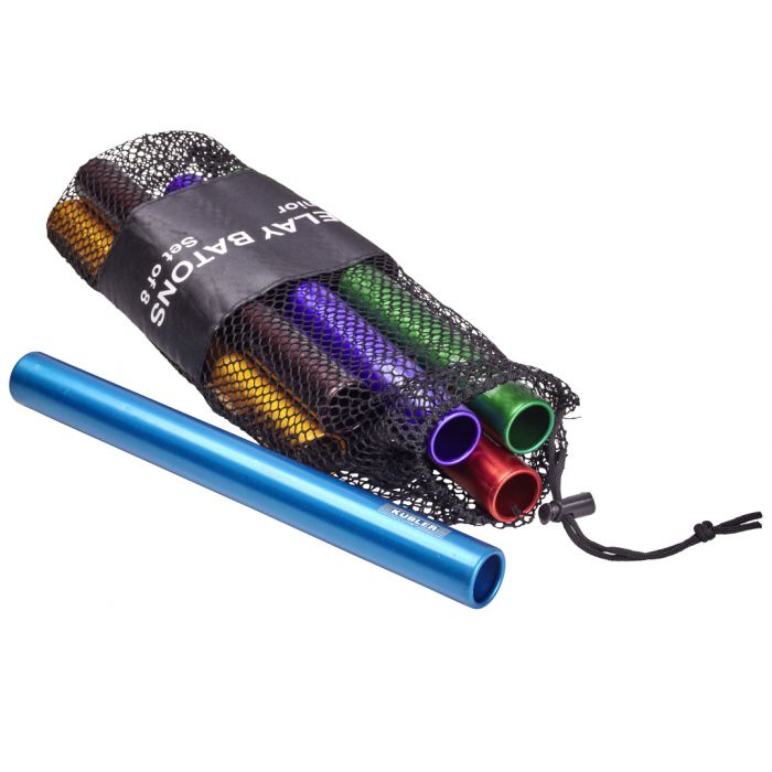 Aluminio anodizado, 30 cm de largo, Ø 30 mm (Junior) / 38 mm (Senior) de diámetro. Se suministra en 8 colores surtidos. Model Senior está certificado por la IAAF.