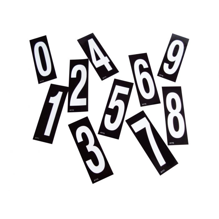 Los dígitos Self-Stick se entregan individualmente. Hecho de papel de aluminio y sin decoloración. Los dígitos autoadhesivos tienen una altura de 10 cm.