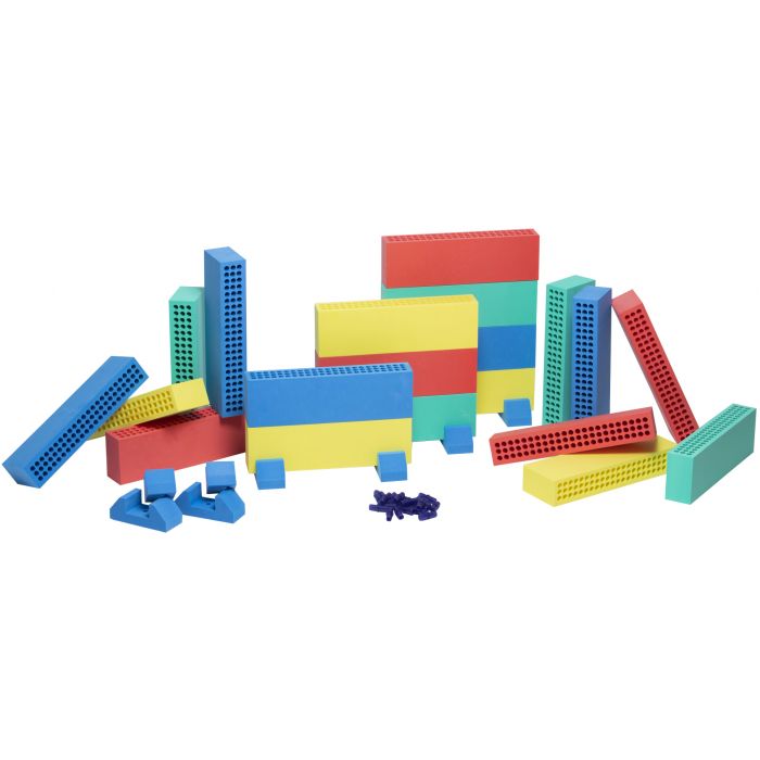 20 bloques de espuma en cuatro colores cada uno LxWxH: 25 x 8 x 7.5 cm y una bolsa a juego. Ideal para juegos creativos.