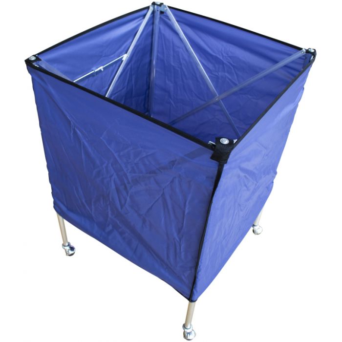 Construcción de acero tubular con nylon lavable resistente a la rotura y 4 ruedas giratorias. Dimensiones: 60 x 60 x 60. Altura total 86 cm.