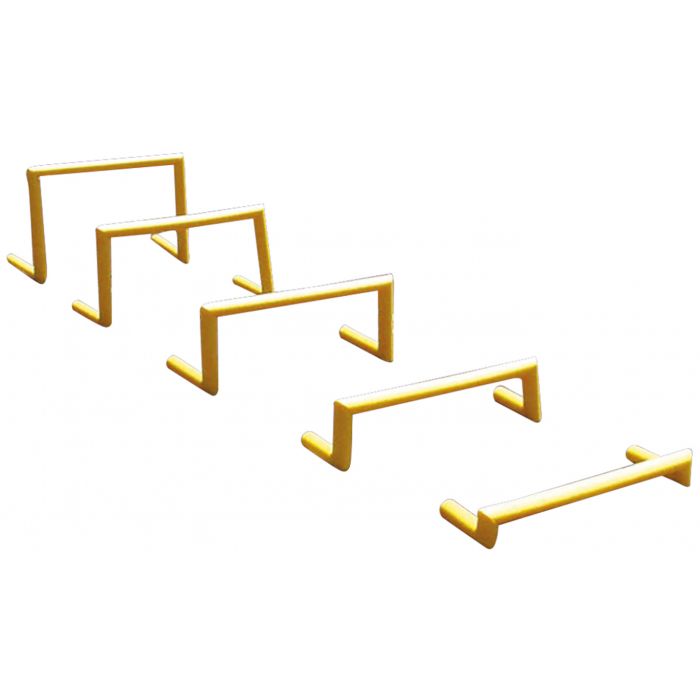 Obstáculos no peligrosos hechos de polietileno blando, diámetro 48 mm, ancho 70 cm. Absolutamente seguro, ya que no se incluyen componentes rígidos. Las patas de los obstáculos están unidas por cordones de nylon, sin embargo, los obstáculos son muy estables y duraderos. El juego incluye un obstáculo con 10, 20, 30, 40 y 50 cm de altura cada uno, adecuado para una serie de ejercicios motores en atletismo o para deportes de equipo y rehabilitación.