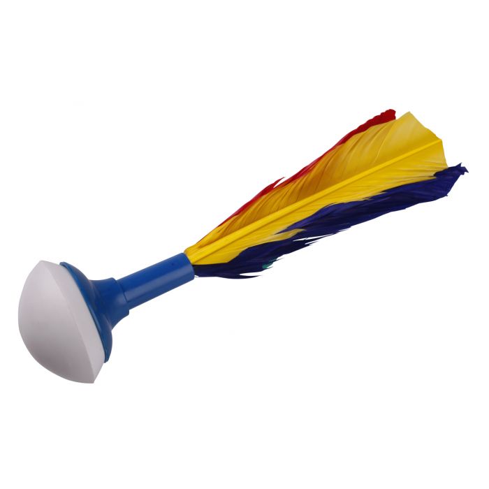 Muy divertido ya sea en la piscina o en la pista. Parte superior de espuma suave, cuerpo de plástico robusto, 4 plumas de ganso coloridas y reales.